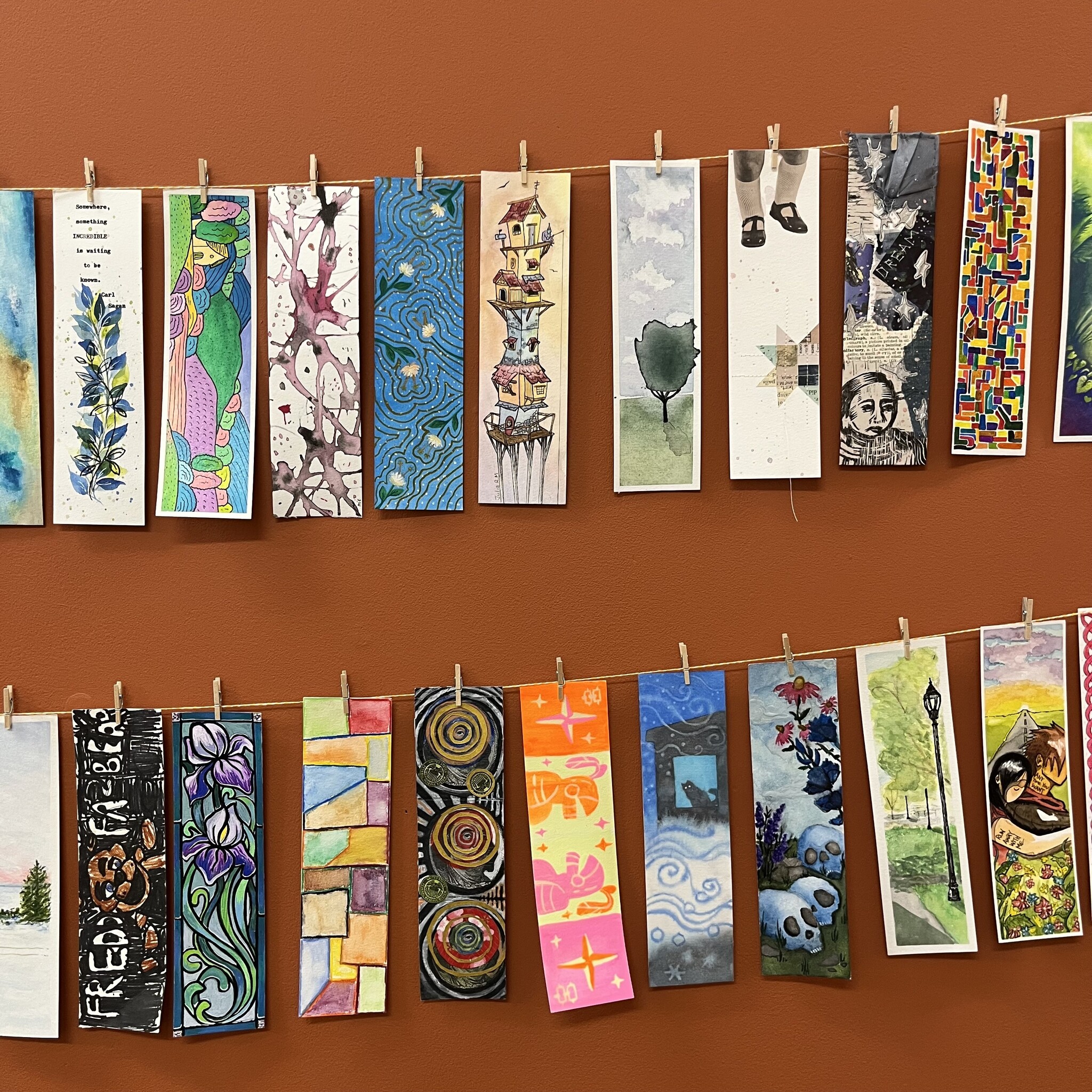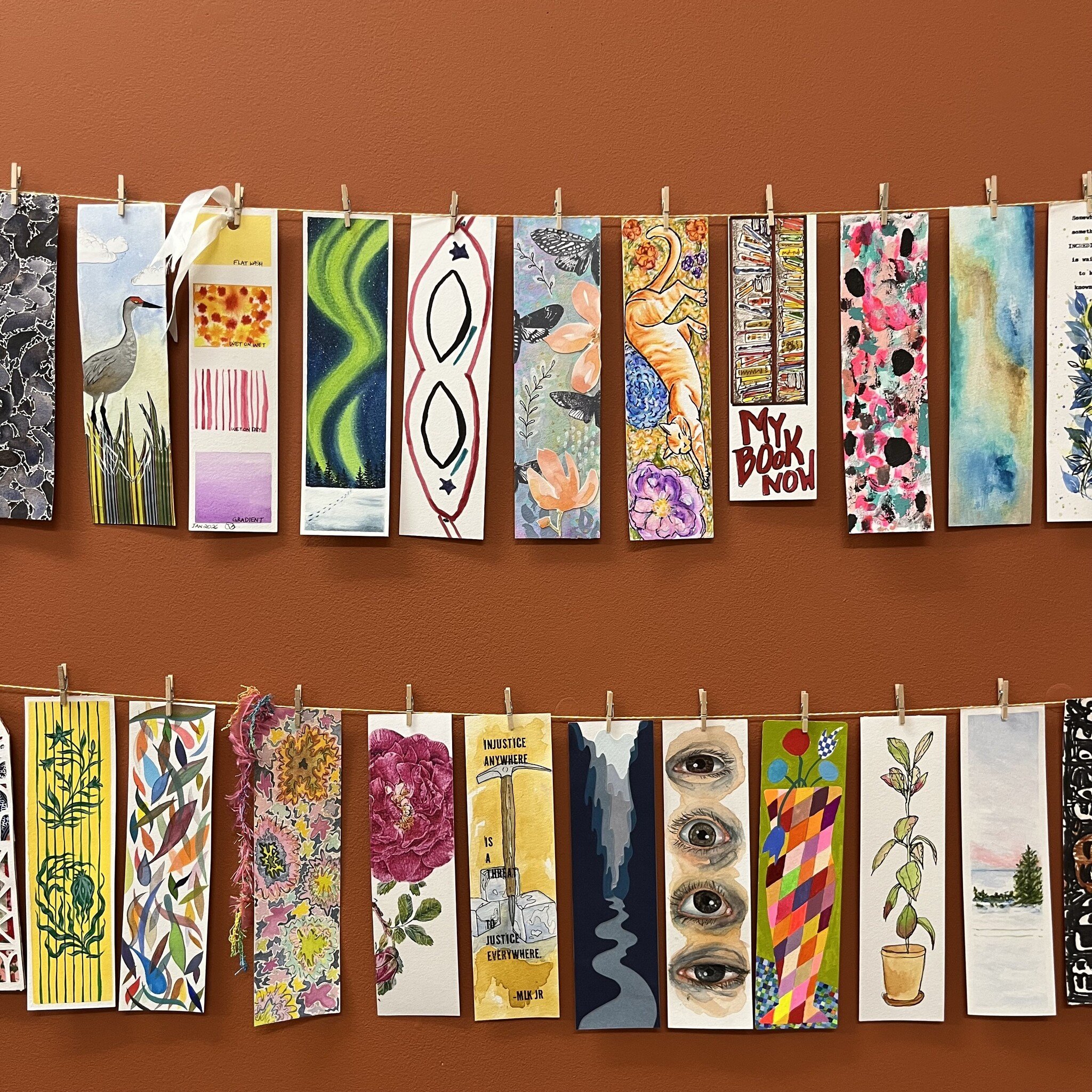After February 19, bookmarks will be randomly exchanged and each participant will receive an original bookmark made by one of the other artists in the show.