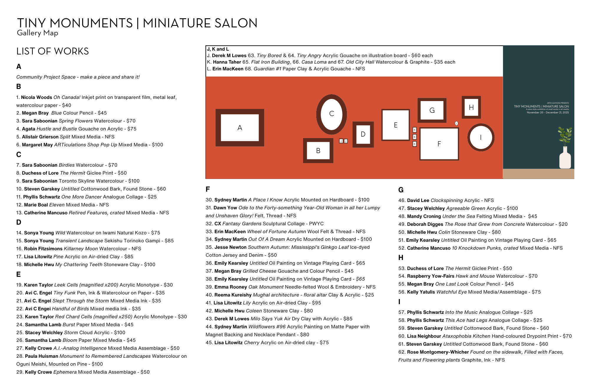 An exhibition celebrating small-scale work with big presence featuring 68 artworks by: