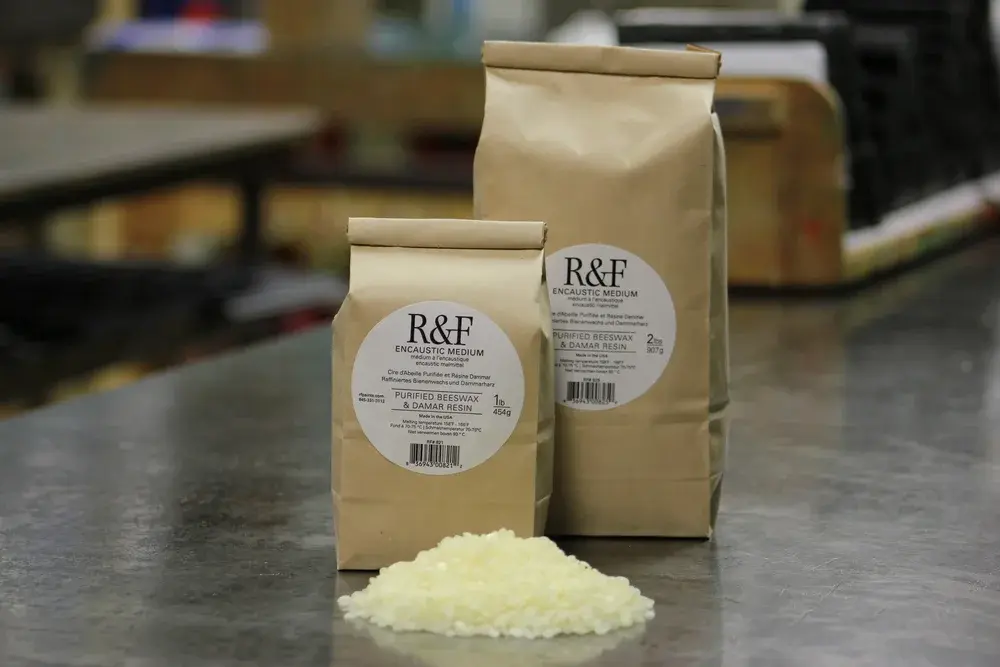 Composed of 100% USP beeswax and damar resin. Medium can be used to create transparency and extend colors, as well as for mixed media and sculptural applications. Available in 1 lb, 2 lb, 5 lb, and 10 lb bags.