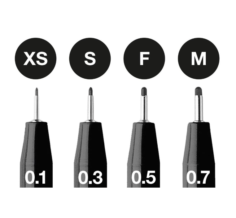 - Content: XS = 0.1 mm, S = 0.3 mm, F = 0.5 mm, M = 0.7 mm