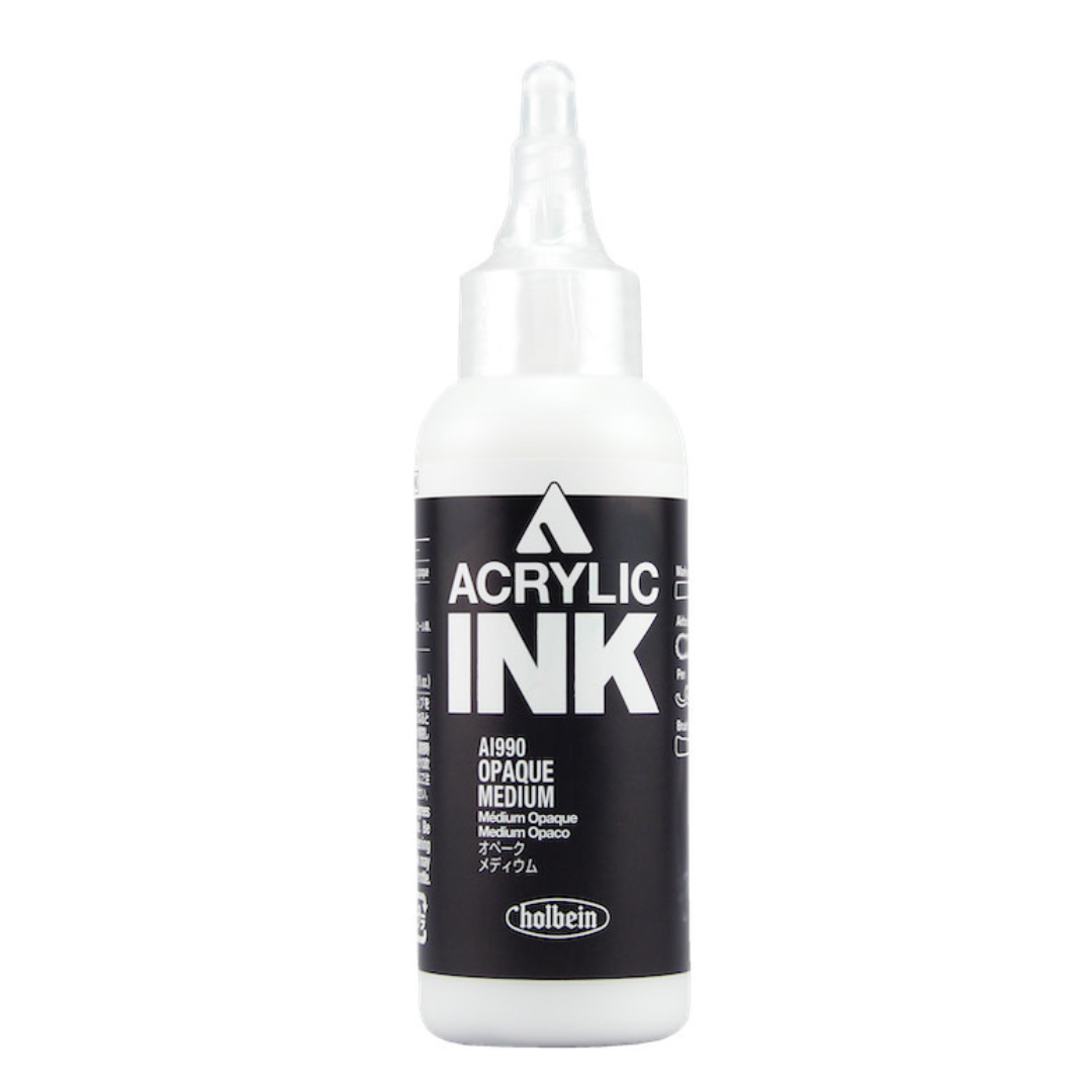 Opaque Medium mixed with acrylic ink will increase its opacity. It dries to a smooth matte finish and is permanent when dry. It can be used with other Holbein Acrylic paints and Mediums although if layers are applied on top, the ink may bleed through.