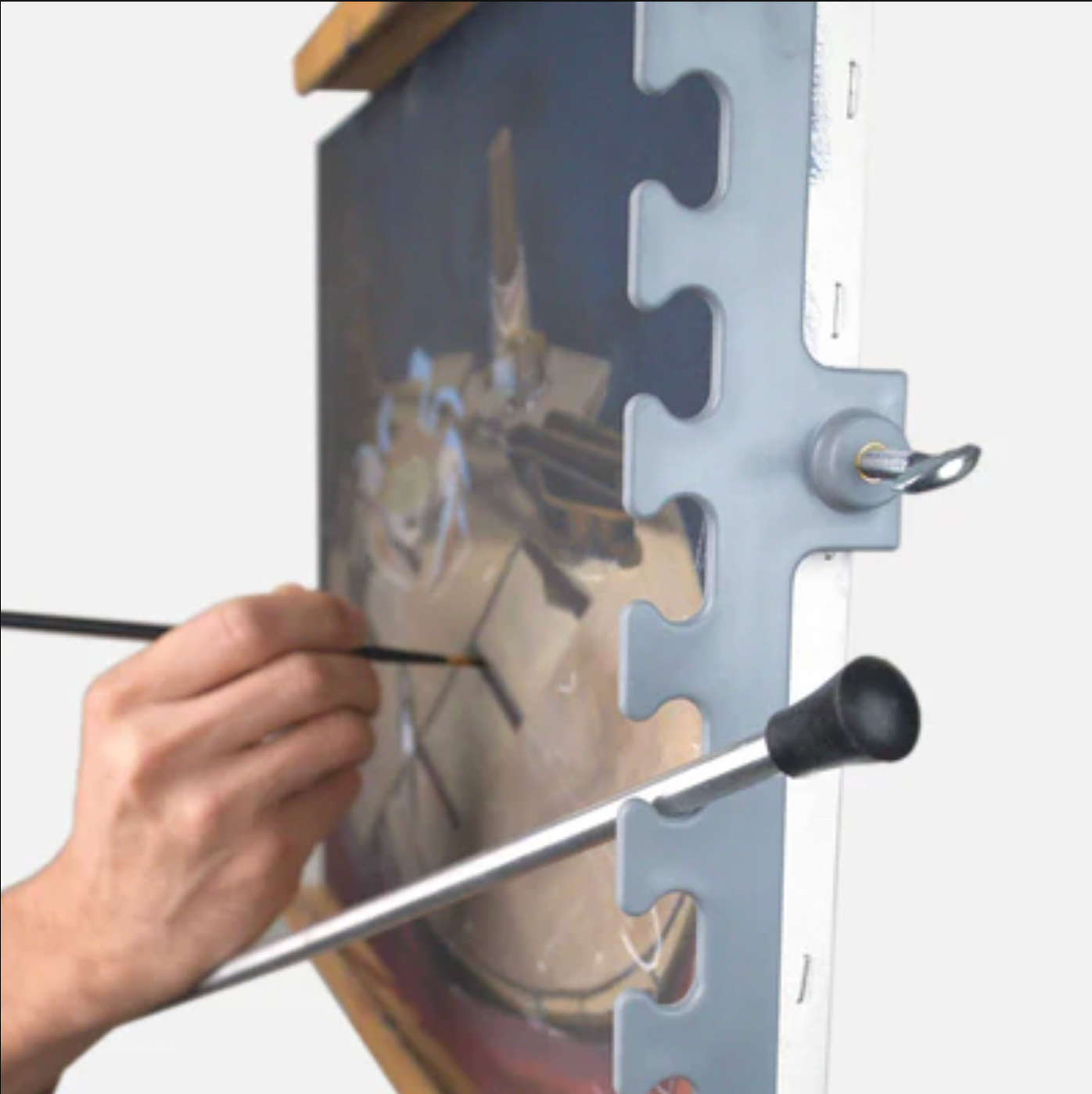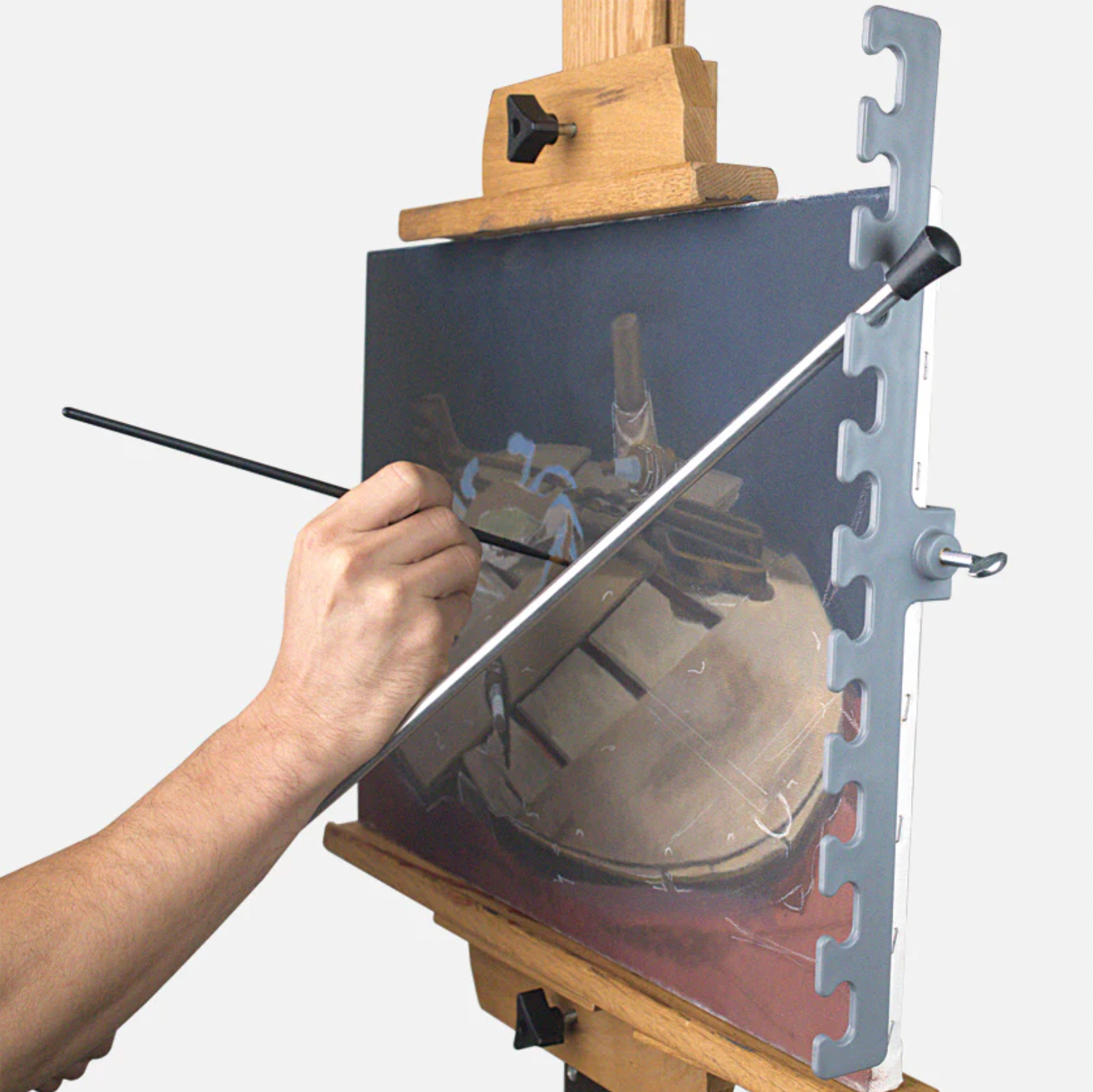 - vertical length of 16.5in (41.91cm). - made from neutral grey high impact plastic - universal clamp attaches to the left or right side of the frame - clamp can grasp any substrate 1.88in (4.77cm) wide or less.